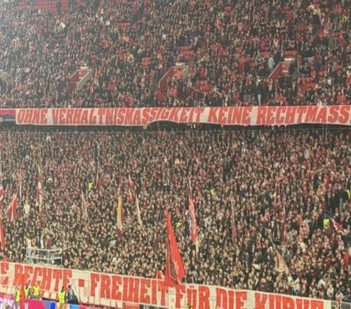 针对此前与警方的冲突,拜仁南看台拉横幅:反对任意执法