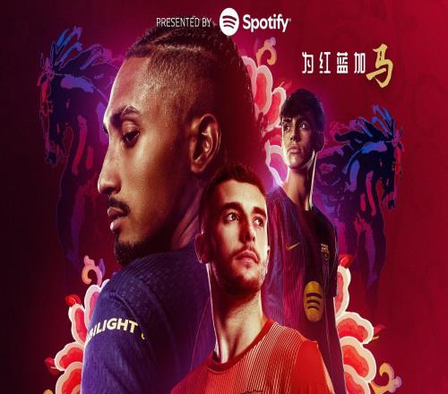 为红蓝加“马”,巴萨对阵莱万特赛前发布马年中文主题海报