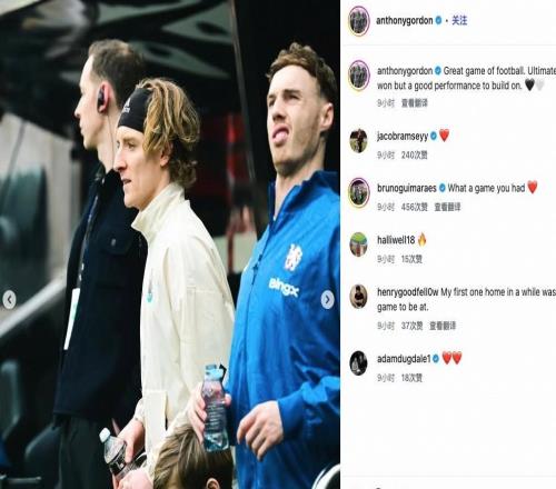 安东尼戈登赛后更新社媒,配图中帕尔默神情有些奇怪