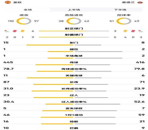 曼联vs桑德兰全场比赛主要数据: