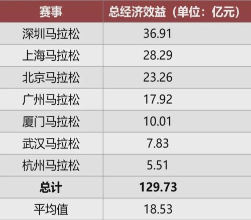而据中国田径协会不完全统计,截至2024年12月20日,全国举办的10项国际金标及以上马拉松赛事,直接经济效益总计为54.30亿元,间接经济效益中,赛事产出效应(对GDP的贡献)125.39亿元,赛事就业效应(因赛事而新增就业岗位数)5.58万个。