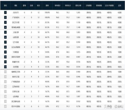 北京时间12月26日晚,2025/26赛季常规赛,第6轮比赛再战6场。本轮最新争夺,宁波、福建、广东和青岛皆在主场获胜,而天津和北京各自在客场告捷。