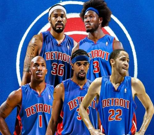 活塞的祖上谈不上多么富裕却也有过两段比较辉煌的时期,他们在88-89和89-90两个赛季捧起总冠军奖杯,在微笑刺客托马斯的带领下,活塞可是连续三个赛季在季后赛淘汰乔丹领衔的公牛。03-04赛季,著名的底特律五虎击败湖人,再度捧起总冠军奖杯,接下来的04-05赛季,他们又与邓肯带领的马刺在总决赛大战七场,可惜遗憾落败。