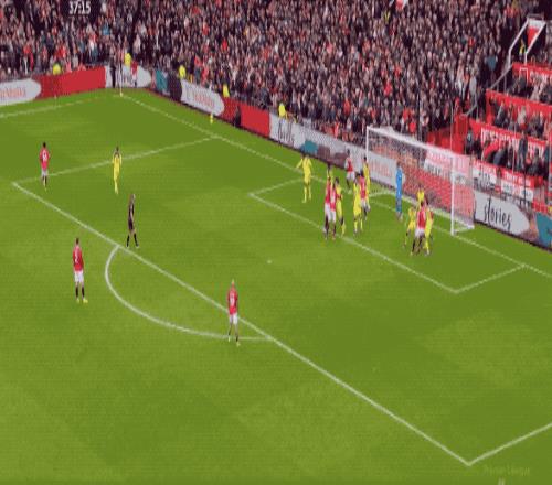 第38分钟,曼联开出战术角球,梅努不看人助攻,姆伯莫推射远角,打破僵局。