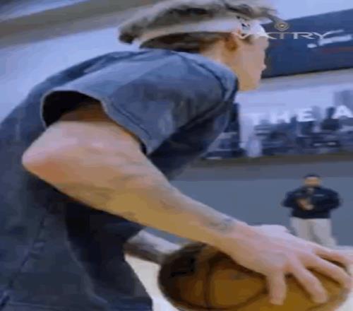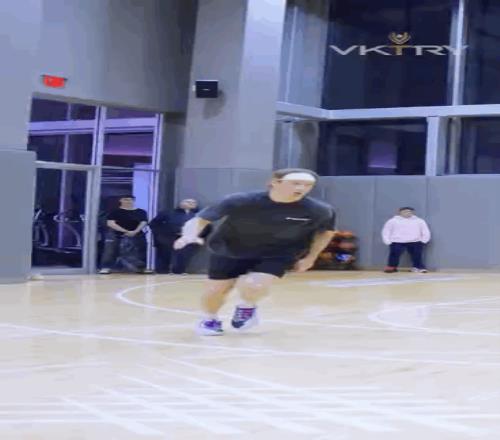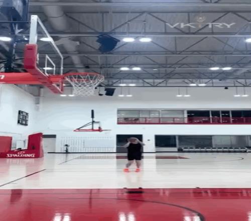 第一记扣篮就惊到了,与两人配合,飞跃+正面反手背扣,这一球难度不用多说,不仅要有出色弹跳,也对柔韧性有一定要求,扣篮大赛史上从未出现过类似扣篮。