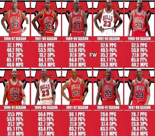 第五,迈克尔·乔丹的10次得分王,得分统治力的终极体现。7连庄+复出再拿3次,这种中途退役复出还能统治得分榜的能力,现如今真的无人能比。现役杜兰特最多才4次,如今得分高手遍地走,当家球星拥有无限开火权后,场均25+一抓一大把,得分王最后拼的就是小数点,10次得分王,注定后无来者的存在。