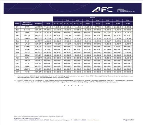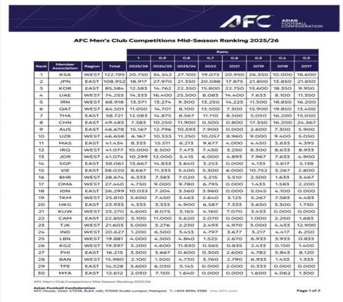 沙特联赛继2024/2025赛季登顶亚足联男子俱乐部赛事排名榜榜首,在2025/2026赛季中期排名榜上继续领跑。亚足联表示,此次排名榜的更新依据主要是本赛季亚冠精英联赛、亚冠二级联赛继亚足联挑战联赛的最新战况。