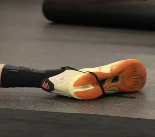 库里在训练中上脚的是安踏SV Eclosion Type 2,此前库里在比赛中也上脚过未发售的Eclosion Type2。