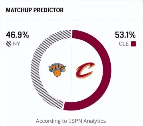北京时间2月25日,NBA常规赛迎来一场东部的焦点对决,骑士在主场迎接尼克斯的挑战,此战不仅是全美直播,更是东部第三的卡位战!骑士赛前战绩36胜22负位列东部第四,尼克斯37胜21负位列东部第三!骑士近期状态不俗,近14战拿下12场胜利,值得一提的是,哈登加盟后,骑士战绩5胜1负,期间,哈登场均数据为18.7分5篮板8.7助攻,3分命中率高达47.1%,个人胜利贡献值队内第一,整体来说,哈登的加入带来骑士急需的组织能力,以及关键球能力,分担米切尔的持球压力!尼克斯这边,阵容深度出色,攻守体系已非常完善,不过近期布伦森状态一般,骑士有望借助主场优势拿下这场胜利。赛前,ESPN预测本场比赛的结果,骑士胜率53.1%,尼克斯胜率46.9%。