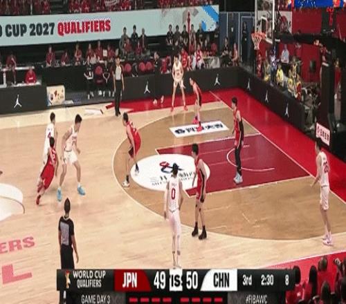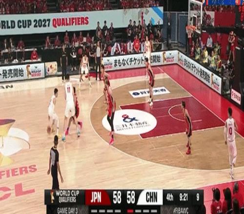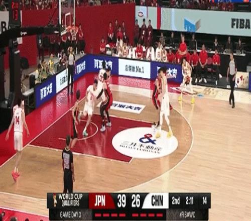 廖三宁突分朱俊龙三分命中!中国男篮61-58日本