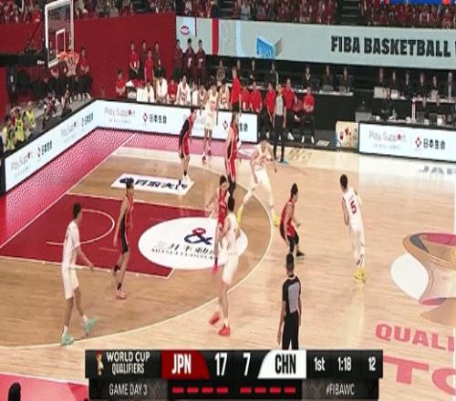 日本男篮连续前场板二次进攻得分!中国男篮15-27日本
