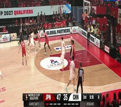 高诗岩借掩护三分追平比分!中国男篮49-49日本