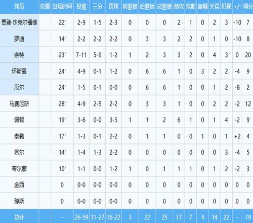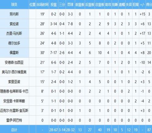美国男篮数据如下: