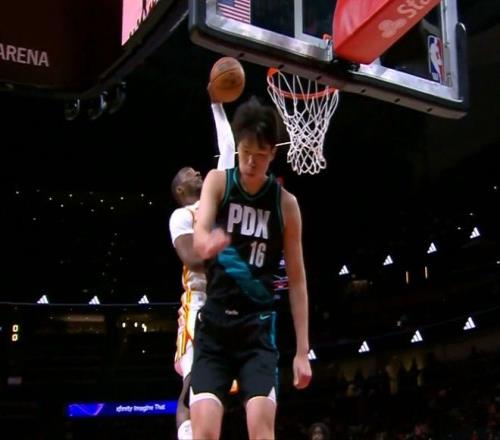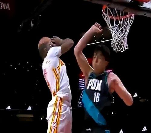 防守脚步缓慢,积极性也不够,最关键的是,还缺乏一股狠劲。另外一个防守回合,老鹰打快攻,几次传导球后,球来到外线文森特手里,文森特一个投篮假动作,点飞了克雷伊奇,然后低手把球喂到了三秒区附近的库明加手里。库明加接球后,看到防守他的是杨瀚森,毫不犹豫,直接起飞,迎着小杨就是一个左手重扣,势大力沉,非常炸裂!这球小杨也起跳了,但是最后一刻,没有去干扰,似乎害怕了,躲开了,被库明加完成了隔扣。