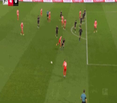 第57分钟,红点套餐,雅克松造点,穆西亚拉破门,拜仁3-0门兴