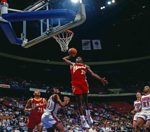 1982年选秀大会,威尔金斯在第三顺位被犹他爵士选中,随即被交易到老鹰,开启了一段传奇。新秀赛季他场均17.5分,第二个赛季涨到21.6分,从此连续11个赛季场均得分超过20分。1985-86赛季,他以场均30.3分拿下得分王;1986年扣篮大赛,他用一记大风车抡臂扣惊艳全场;1988年季后赛,他率领老鹰和拉里-伯德的凯尔特人鏖战七场,最终以两分之差落败,但凭借场均31.3分的表现赢得了所有人的尊重。