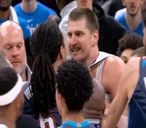 下半场归来,雷霆曾依靠一波9-2的进攻高潮,将分差拉开,眼看就要掌控比赛主动权,但掘金约基奇挺身而出,连续两个勾手和一个罚球,连得6分,稳住局势。末节比赛最后时刻,亚历山大单挑布劳恩命中三分,雷霆领先4分,比赛进入读秒阶段。此时赛场出现极具戏剧性的一幕,约基奇在三分线外接球后,果断出手命中一记关键三分,与此同时,雷霆球员杰林撞倒穆雷,裁判吹罚犯规有效,掘金一回合打成另类3+1,神奇成功将比分扳平,仅留给雷霆8秒。