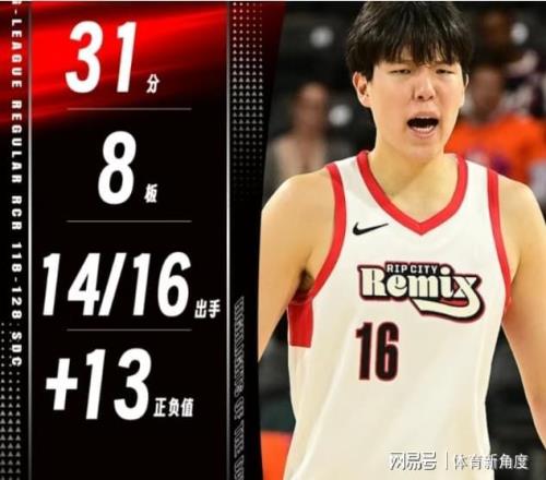 他的投篮手感热得发烫,16次出手竟有14次稳,其中三分线外也是一击即中,1投1中,就连罚球也是1罚1中,毫无悬念地轰下了自己G联盟生涯以来的最高分——31分。除此之外,他还贡献了8个篮板、3次助攻、1次抢断以及1记精彩绝伦的盖帽,正负值高达+13,傲视全队!