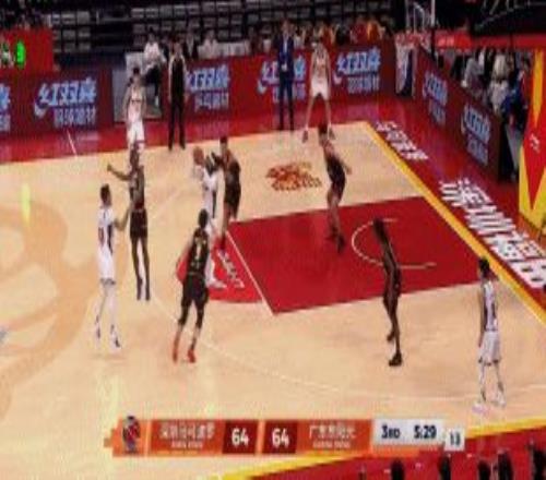 第三节中段,深圳外援史密斯战斧劈扣,将比分扳平,之后他又在反击中上篮打中。