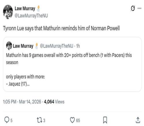 赛后泰伦卢丝毫不掩饰对他的喜爱,公开称赞到:“他让我想起了诺曼-鲍威尔。”