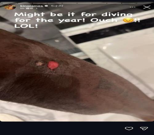 北京时间3月17日,湖人球星詹姆斯更新社交媒体动态,晒出了自己腿上的伤口。