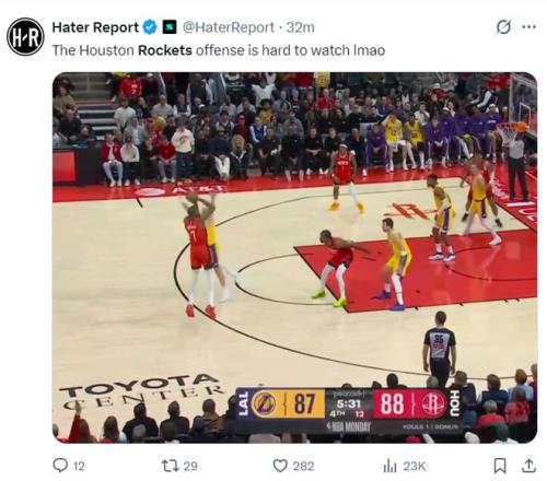 美媒:火箭第四节VS湖人的比赛是我见过最糟糕的一场。