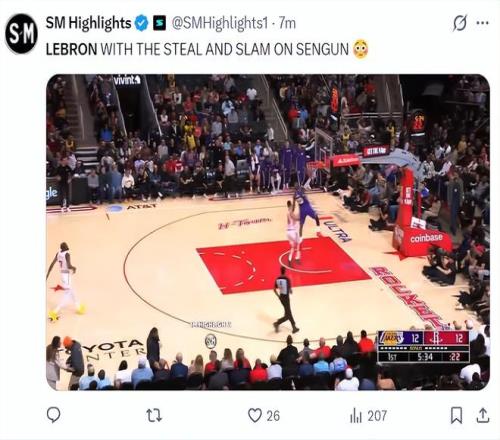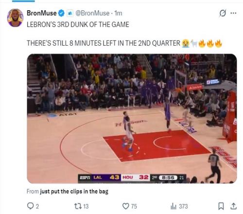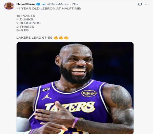 湖媒:上半场詹姆斯已经完成了4次暴扣,41岁的勒布朗又火了。