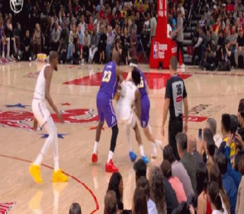 湖人还是得靠41岁的老詹,詹姆斯为里夫斯挡拆后顺下,空接暴扣2+1追平比分