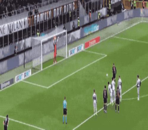 第36分钟,帕夫洛维奇外脚背撩射,皮球划过一道优美的弧线,越过门将头顶,米兰取得领先。