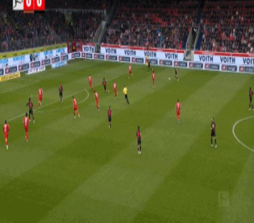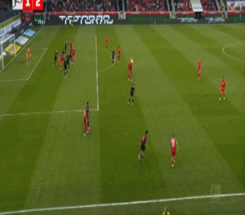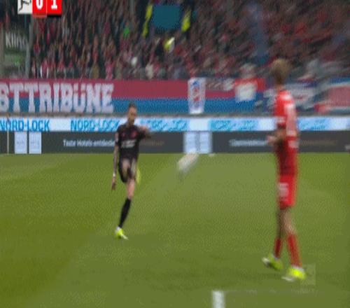第56分钟,贝伦斯传中,皮球直接入网,海登海姆1-2药厂