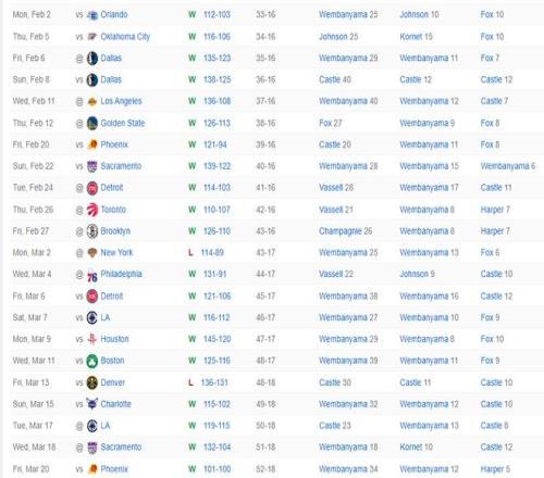马刺队在过去的22场比赛中赢下了其中的20场,这也是为什么他们跟联盟第一的雷霆只差3个胜场的关键,很多人都支持文班亚马拿这个MVP,因为SGA的碰瓷让很多球迷感到不满。