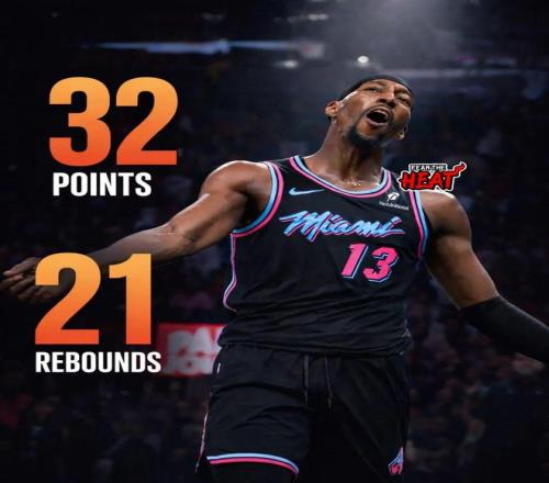 虽然没赢,但这场比赛热火的“83分先生”阿德巴约交出了非常不错的表现:全场出战45分钟,投篮21中12,三分4中2,罚球8中6,得到32分21篮板4助攻2抢断。